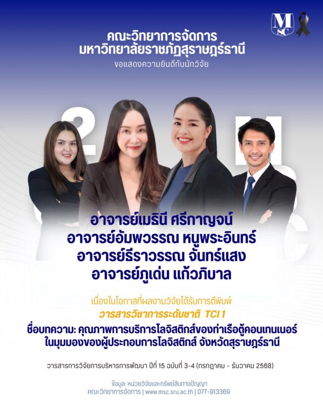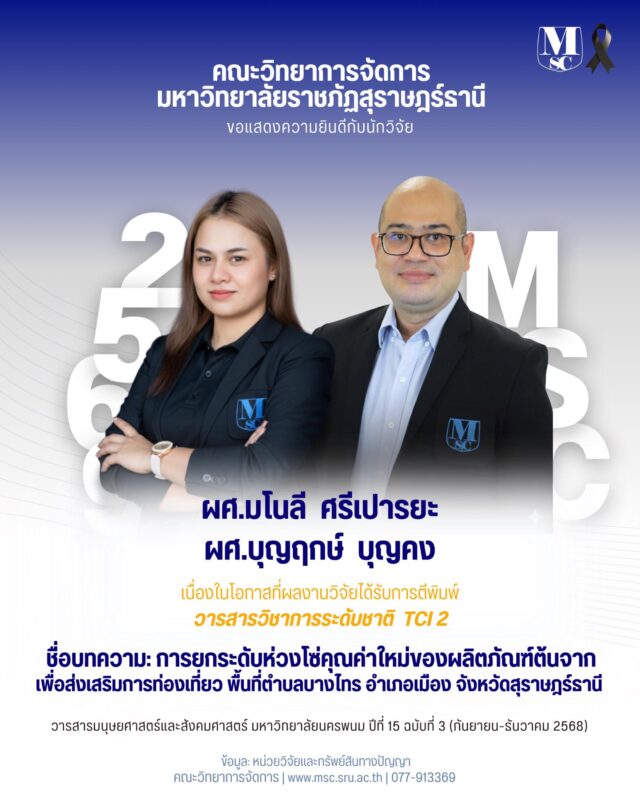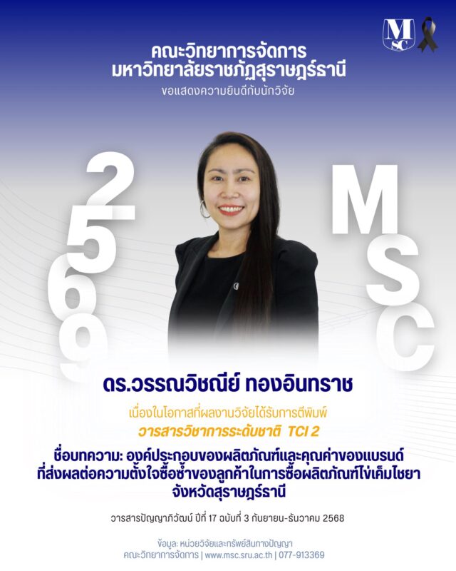 ประกาศรับข้อเสนอโครงการวิจัยเพื่อขอรับทุนอุดหนุนการวิจัย จากเงินกองทุนวิจัย มหาวิทยาลัยราชภัฎสุราษฎร์ธานี ปีงบประมาณ 2568 สำหรับบุคลากรสายวิชาการ ประเภททุนวิจัยทั่วไป 1 56 downloads |